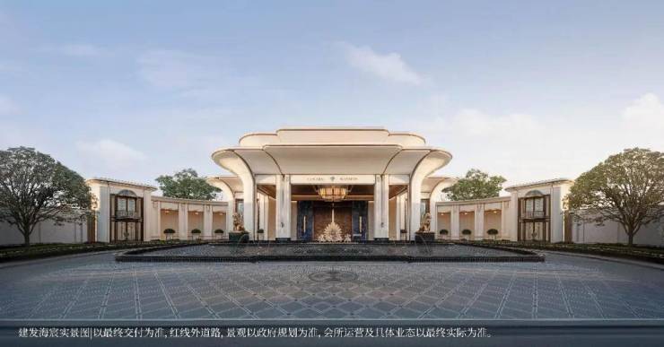 恢弘门头,豪气满满,宽约65米,14米挑高白玉兰造型穹顶,搭配水景喷泉营造归家仪式感。