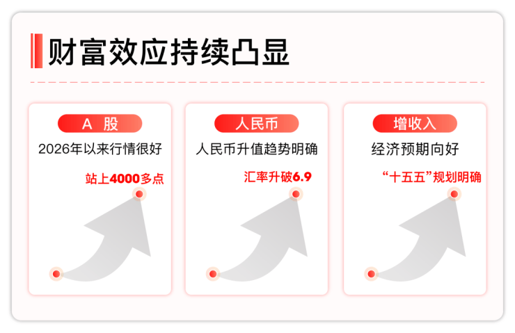 A股连阳站上4000多点,激活市场活力并提升居民财富预期;离岸人民币对美元汇率升值趋势明确,人民币资产长期配置价值凸显;“十五五”规划将“增收入”纳入重点,经济预期向好夯实消费能力。