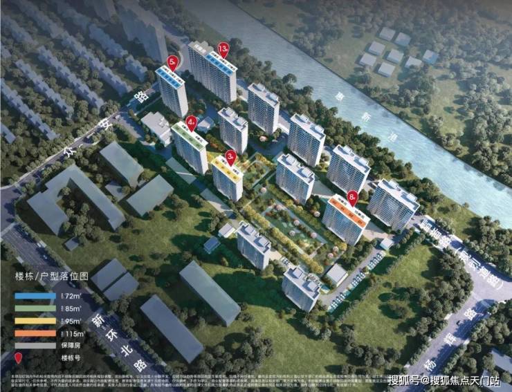 项目首开3、4、5、8、13#等5幢,首开房源356套,楼幢位置及户型分布如下