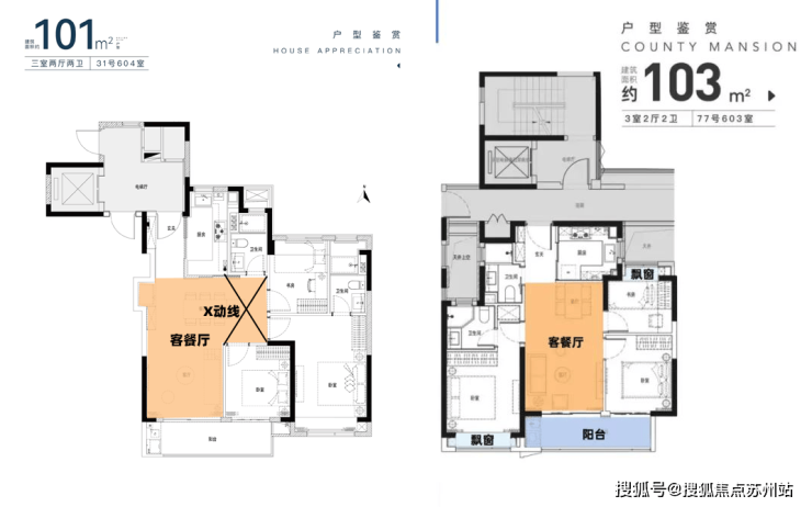 再来看看本次101㎡户型与大一期103㎡户型的对比:
