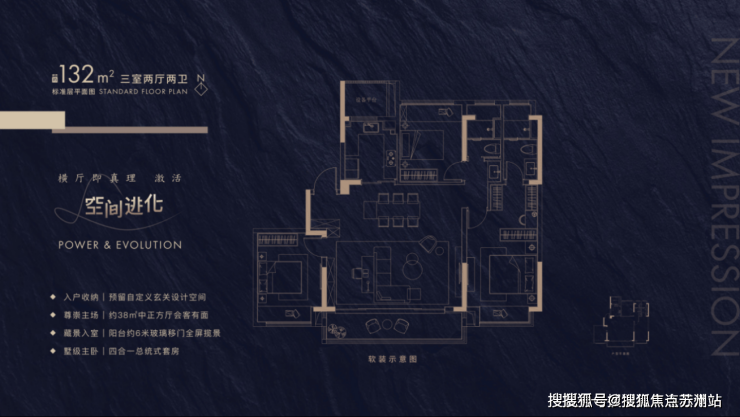 -建面132㎡3居:220-240万,分布于6、13,2梯2户,主卧带独立卫浴与衣帽间;