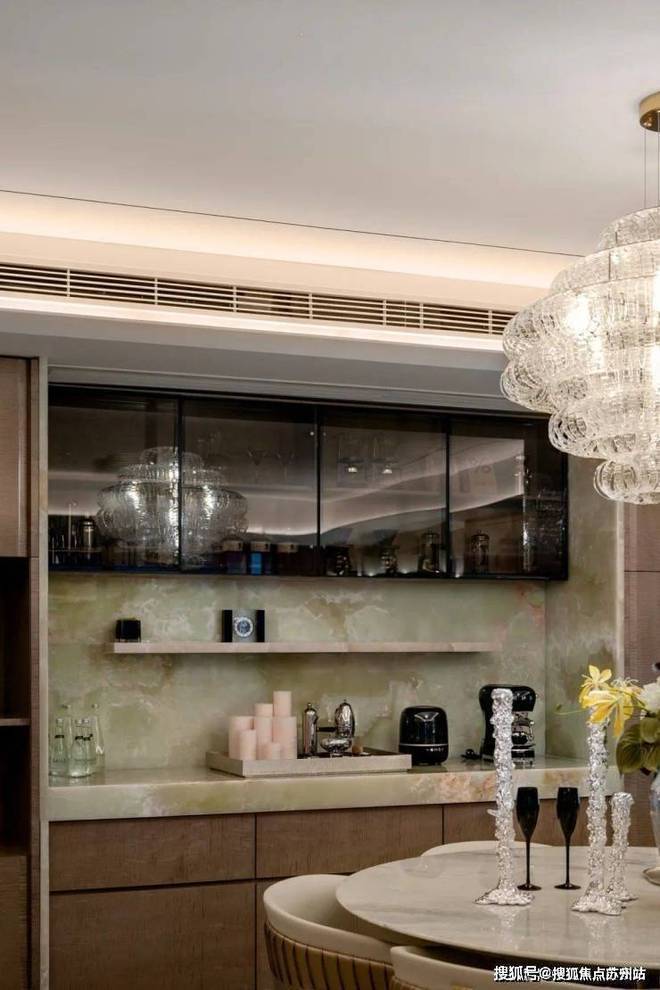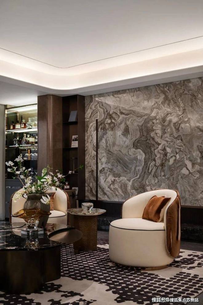 苏州玖著云庭售楼处电话☎:400-8828-814(售楼处预约看房热线)室内软装家具上,选用了真皮,羚羊皮、木纹、奢石等自然材料追求自然本真;同时又有瓦楞夹丝玻璃、镜面茶色金属等现代材料的加入……木质的温润、金属的硬朗、石材的贵气和皮料的奢华,在这里完美融合。