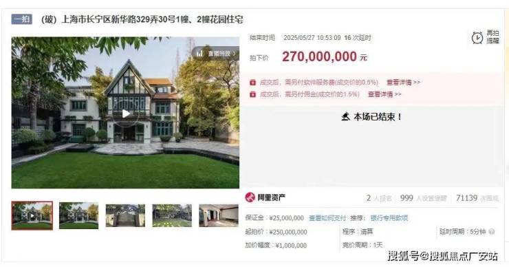 今年5月27日,新华路一幢535㎡花园别墅法拍,以2.7亿元成交,成交单价达到50.46万元/㎡.