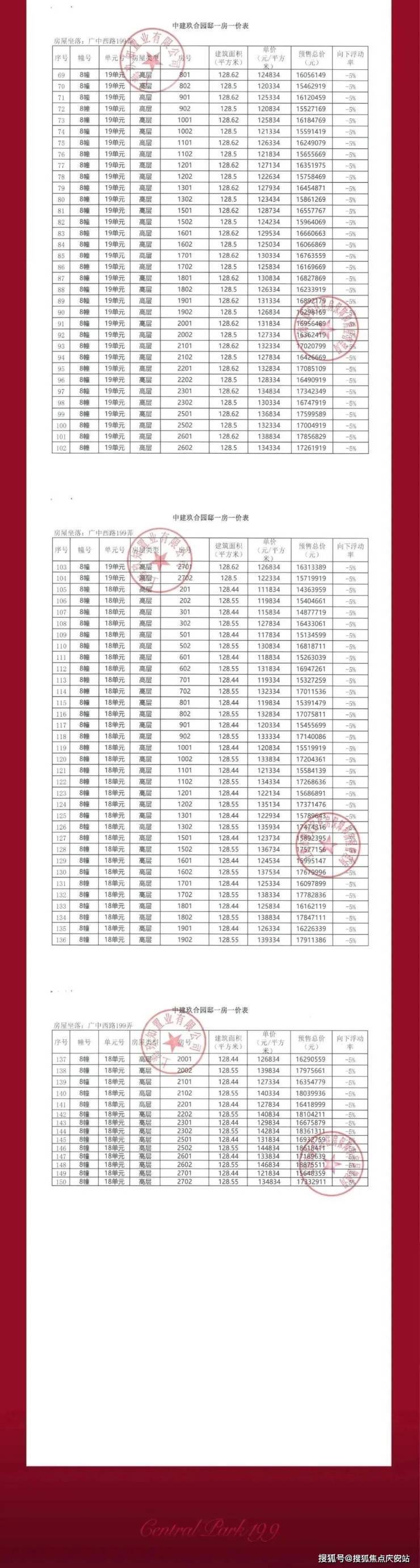 一房一价表如下