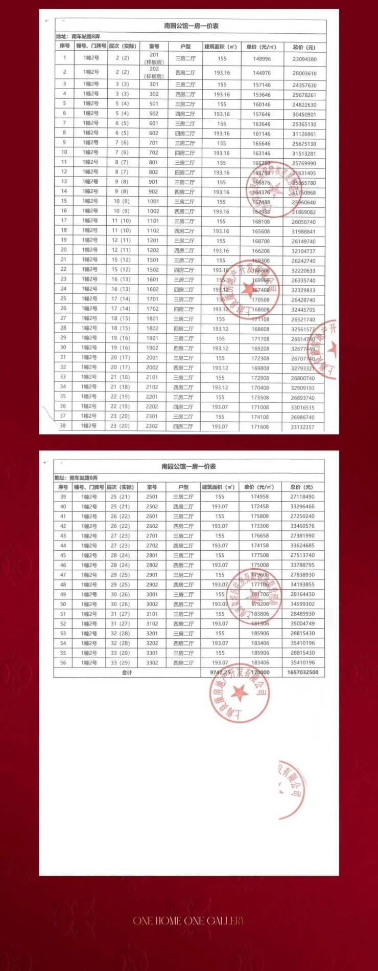 一批次一房一价表