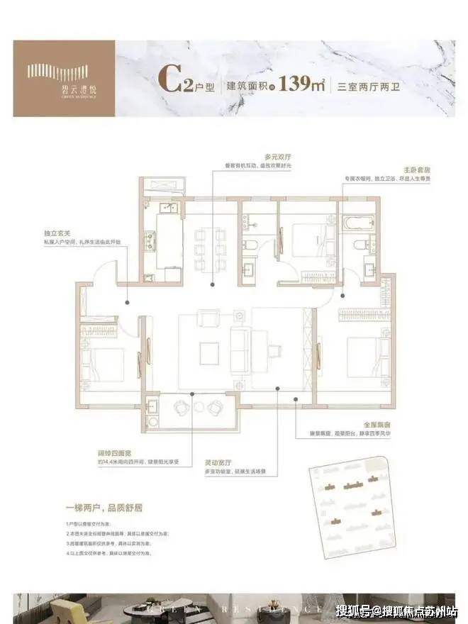 从设计方案来看,项目全部为1梯2户设计,无地上停车位,全人车分流!