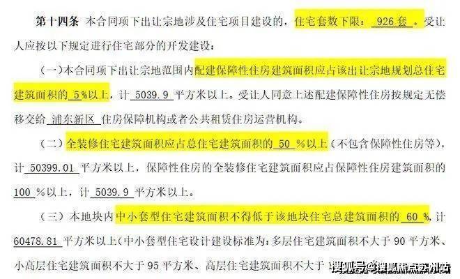 根据出让合同显示,项目占地面积约55988.9m²,容积率为1.8,限高50米,住宅套数下限926套,需配建5%以上的保障性住房,全装修比例50%。