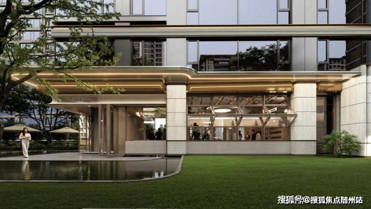 建筑立面选材兼顾未来感与品质感,采用Low-E中空玻璃保障通透视野,搭配贝金米黄铝板,以现代工艺勾勒简洁利落的线条;局部嵌入深灰色金属格栅与科技感灯带,既强化层次,又呼应未来科技城的科创基因,实现“未来形态,质感表达”。