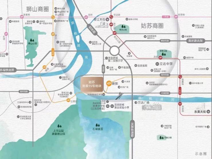 道路:友新快速路、苏福快速路等多条主干道环绕