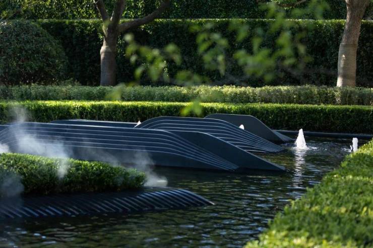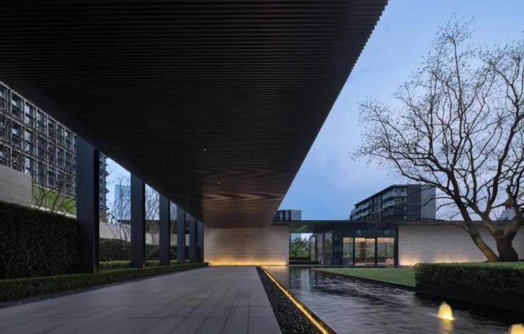 与连廊衔接的地下会所同为SCDA作品,延续了整体布局秩序与平衡,通过中庭花园和超白玻璃的大量使用,将自然光引入地下,使整个会所显得更加开阔和明亮,当然,这席高定艺术会所仅向小区业主开放~