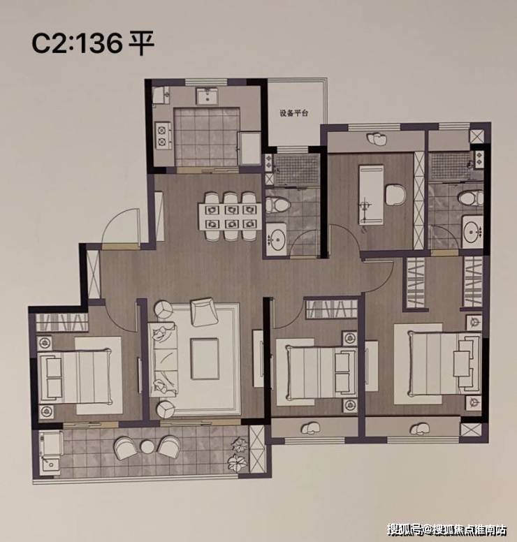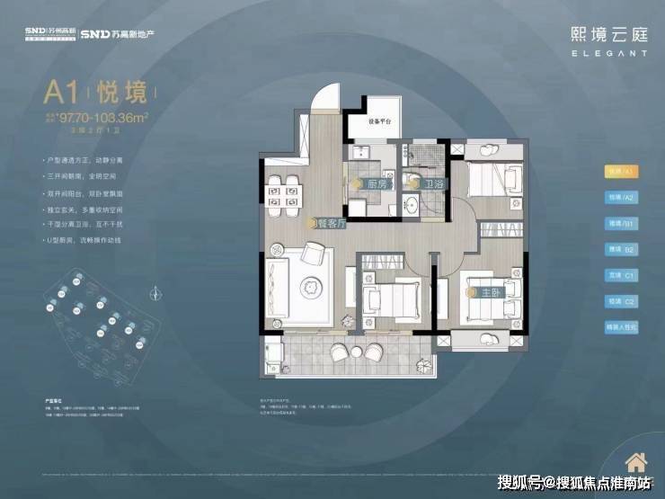 熙境云庭洞悉客户对生活更高的要求,对照当代生活习惯,打造全系三房、四房全明通透产品,为生活创造更多可能。并将厨房、客餐厅、阳台等动区空间一体化贯通,加之以南向双联阳台的设计,提升整体空间的实用性和视野感。同时,C1大户型产品更是配置了横厅,以兼具个体私密与合家共享的高效灵活设计,适配改善家庭更为高阶的空间使用需求。