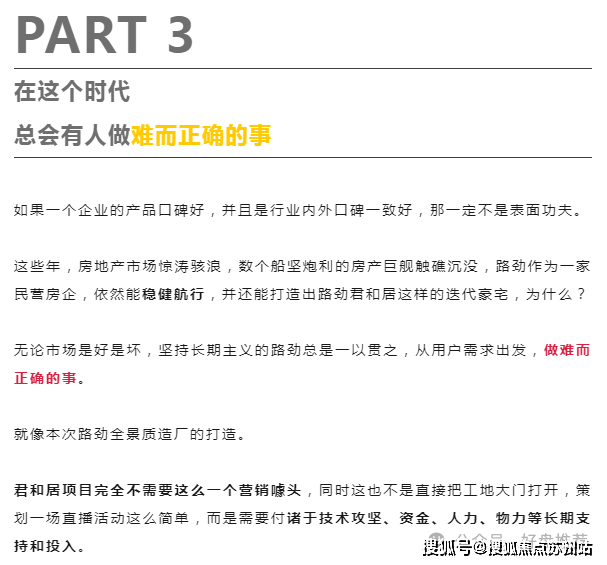 而是像众多知名餐厅选择透明厨房来确保食品安全的可视化,在聚光灯和镜头下,苏州路劲君和居售楼处电话☎:400-8828-814(售楼处预约看房热线)路劲全景质造厂将一个好房子从无到有的全部施工生产过程都展现了出来,让所有业主都能亲眼见证人居的健康与安全。