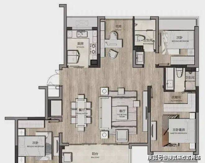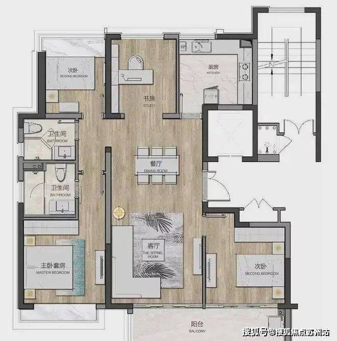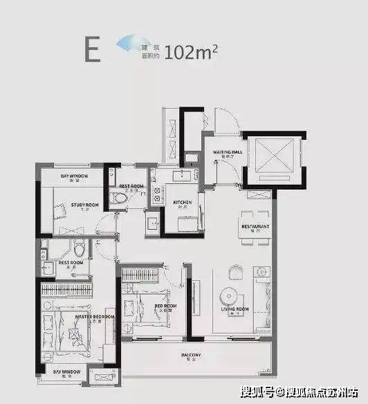 住宅部分,已曝光2种户型,2梯4户,都是3房2厅2卫。根据出让要求,这2种户型的建筑面积都不小于100㎡。