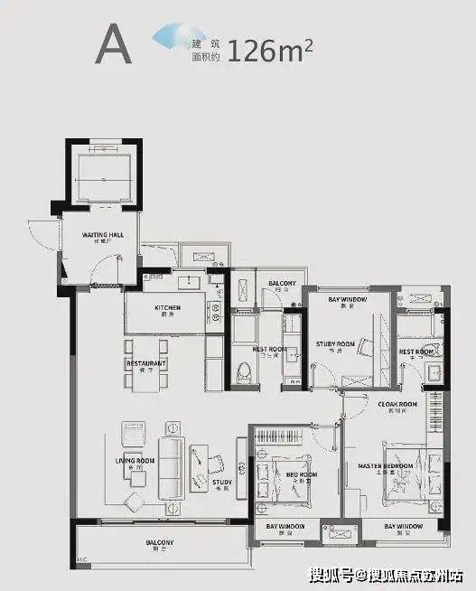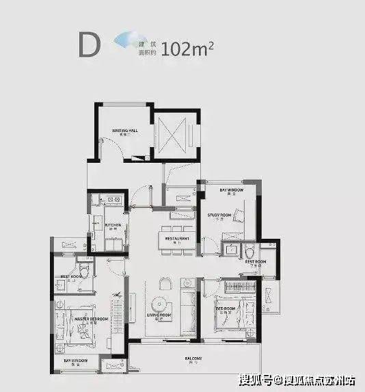 项目户型面积段约102-126㎡,3房-4房设计,一梯一户,其中约102㎡面积段做了3个户型设计,装修交付。