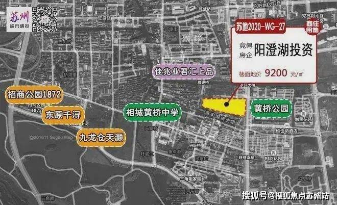 在2020年4月土拍中,位于黄桥街道春申湖路北、苏埭路东的苏地2020-WG-27号地块被阳澄湖投资有限公司拿下,楼面地价9200元/㎡。