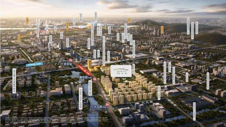 项目横跨地铁9号线兴元路站(在建)、康信路站(在建)两大站点,以轨道打破壁垒,一条地铁直达钱江新城、城东新城、滨江、西湖等高能区域,更高效的日常通勤外,还能享受到一脉市心的生活配套。