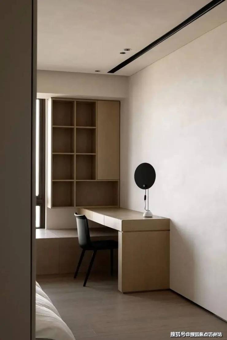 自然原木色系让人不禁沉浸下来,轻灵纯粹的空间气韵直击心灵,在这里思考、激发、输出。自由移动的隐形门,关上,书房是一个灵感生产容器;打开,再次回归纯粹的生活里。