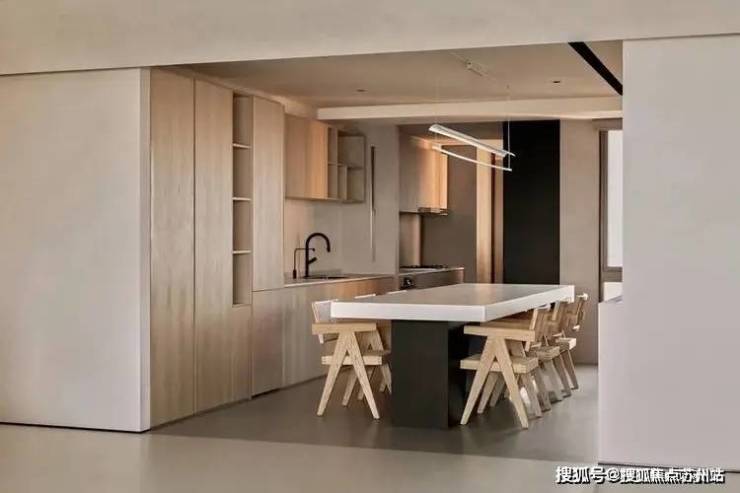 遵循现代极简的设计语言:「自由平面」与「流动空间」,简约的立面与精妙的材质,如岩板、原木色柜体与微水泥,形体的简洁与纯粹从这纵横交错的垂直水平立面被构建出来。每一空间都有自己的生命系统,容纳着我们的呼吸、感知,生活的展开与收敛。