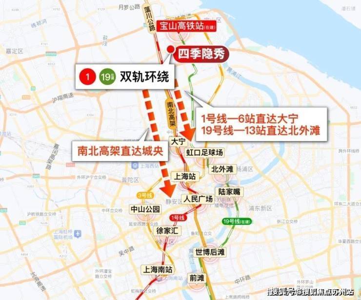 宝山站(在建)总开发规模约50万㎡,预计27年通车,年客流量约5400万,沪渝蓉铁路、沪苏通铁路二期及19号线(在建)等在此处汇集。(信息来源:上海发布公众号)