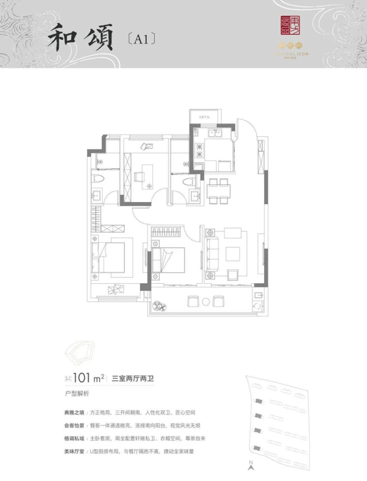 101㎡三房两卫:6.4米双阳台设计,动静分区,适合年轻家庭
