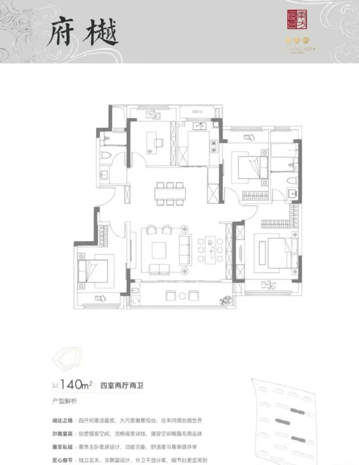 140㎡四房两卫:"四叶草"布局,主卧套房+IMAX观景阳台