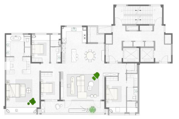 项目全系大平层设计,聚焦改善家庭核心需求,空间利用率与尊崇感拉满: