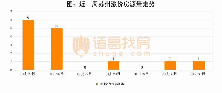 根据诸葛找房数据显示,苏州24小时涨价房源量为1套,较01月30日持平。