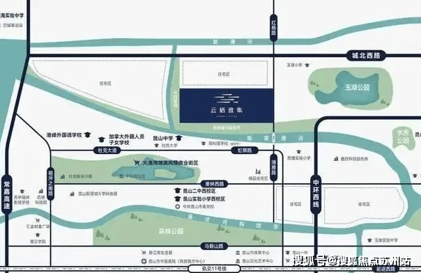 直线距离约1.3公里即是中环西线,无缝对接昆山各区域,萧林西路、城北西路、红杨路等,畅享多维交通路网。