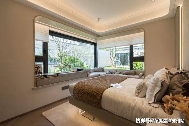 其次,主卧的约270°无柱转角超宽巨幕景观视界。这个景观视野和主卧采光度,实在是惊艳。