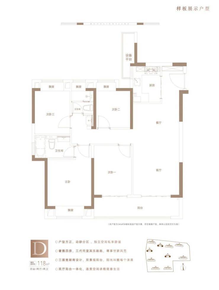 118平4房2厅2卫。