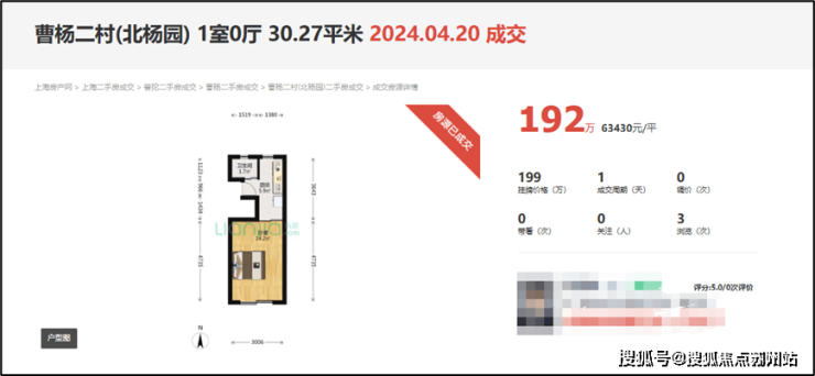 曹杨二村成交的老破小,速度非常快,1天就成交了。