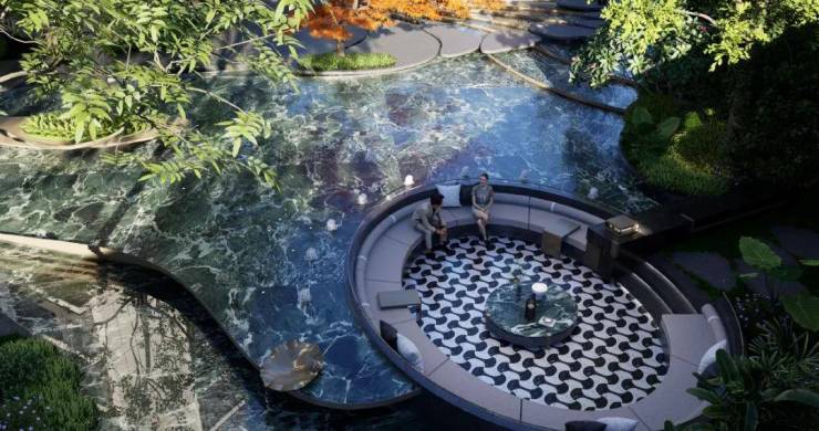 内部园林:以「一轴、一带、一环、九园」规制,营造潮汐花园、社交剧场、下沉会所、阳光跑道等沉浸式景观,归家即入园,四季皆有景。