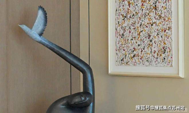 展示空间中的软装极富艺术趣味, 保利世博天悦售楼处电话:400-8787-554比如青铜雕塑《我心飞翔》、玄关油画《飞翔的羽毛》、野崎信次郎《彩の花束》,大师们的真迹为空间注入高雅艺术底蕴,而儿童房的Qeeboo兔子椅则匹配孩童特性充满童趣。 保利世博天悦售楼处电话:400-8787-554
