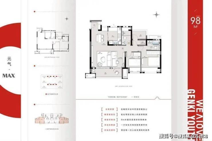 建面约98㎡2+1双卫户型,配置横向宽厅,多用可拓展空间,可满足二孩家庭和三代聚居的所需空间,细节考虑周到,生活从容有序。
