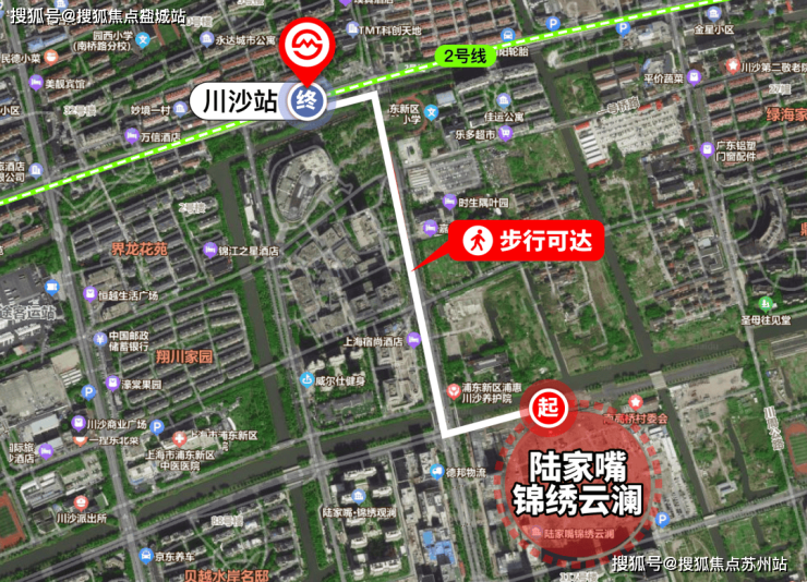 除此之外,陆家嘴锦绣云澜位于川沙首站,距离川沙站直线约750米,步行可达!(数据来源:百度地图)示意图