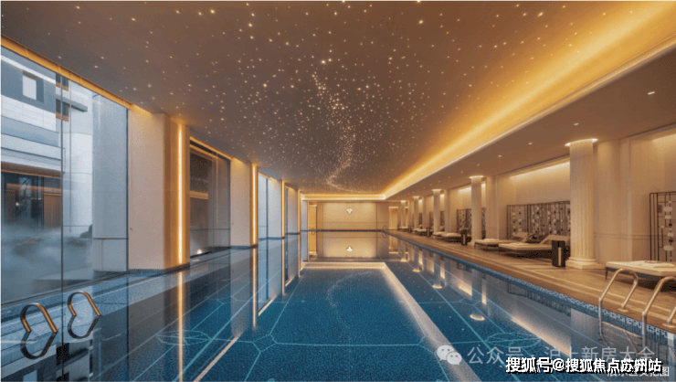 奢朗尺度,打造满水式流体游泳体验,泳池以奢材定制,高品质美学致敬城市。
