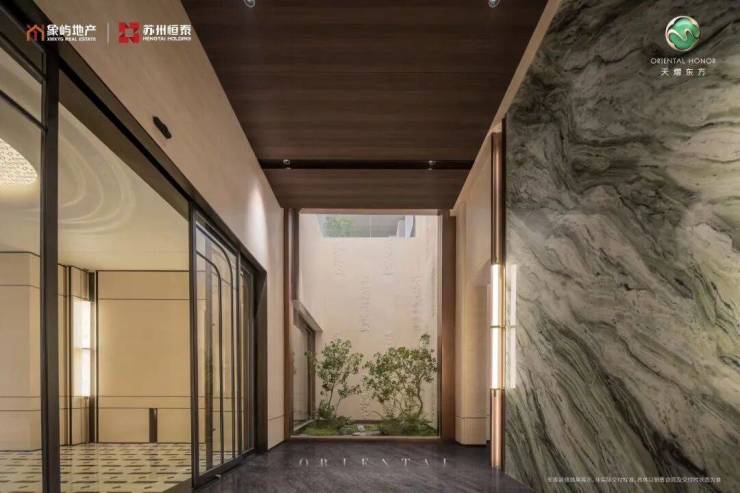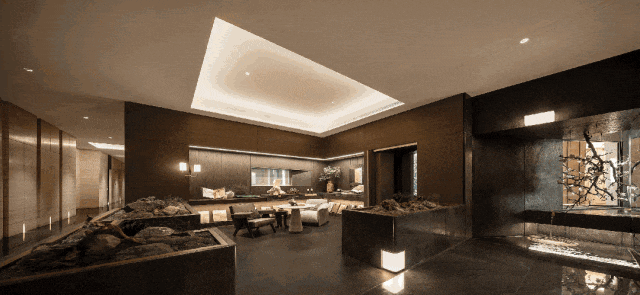 门-廊-庭的入门动线,巧妙地创造出了层层递进的归家感受。天熠东方在一个个的场景转换中,润物无声地深度过滤你的「归家情绪」,这就是大师的功力。
