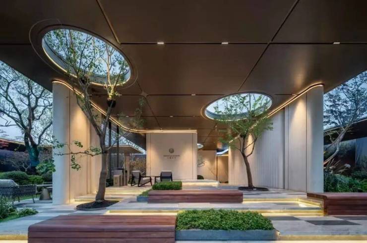 几棵乌桕,巧妙地种植在茶亭中间。自然天光从顶部圆形镂空处倾泻而下,犹如一束舞台剧光灯,照耀着这些高大乔木,姿态更加婀娜多姿。天熠东方售楼处官方电话☎:400-8123-664【售楼热线】✔✔✔天熠东方官方营销中心热线☎400-8123-664天熠东方官方售楼处地址☎400-8123-664(预约热线)