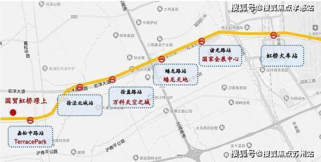 从嘉松中路站出发,接下来的每站几乎都是有大虹桥的顶级商圈或TOD
