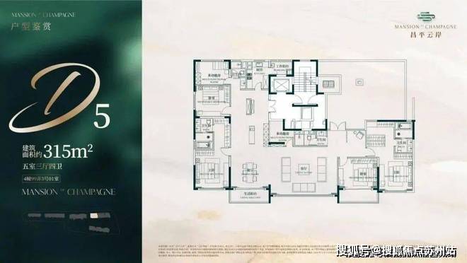 建面约312-315㎡5房3厅4卫户型