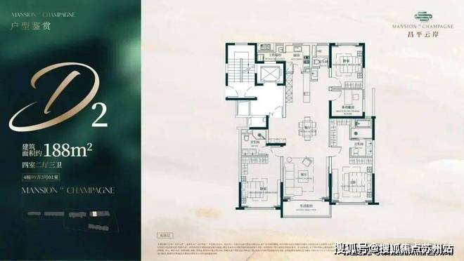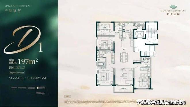 建面约188-197㎡4房2厅3卫全明户型,双套房设计,空间奢阔,尺度感十足!总价仅约2600w起,其含金量不必多说。