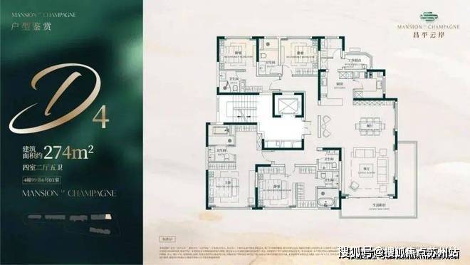 建面约274㎡4房2厅5卫户型