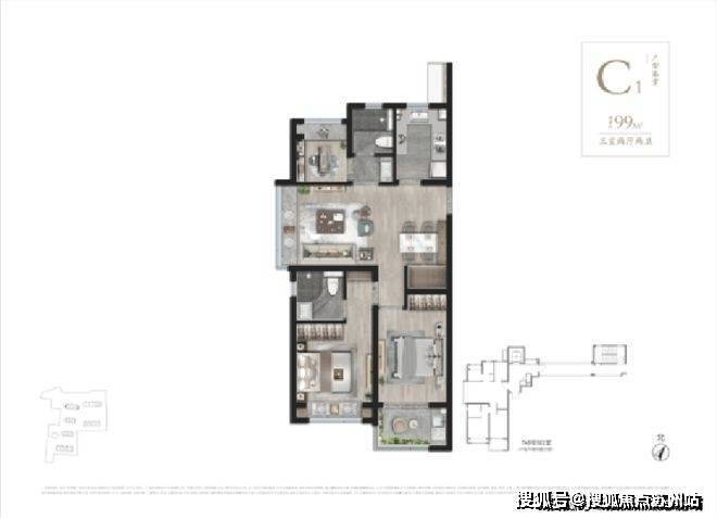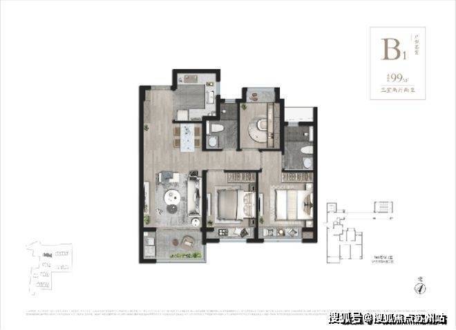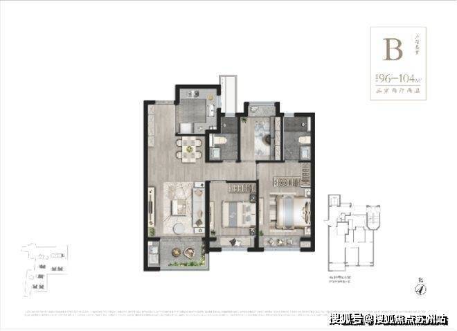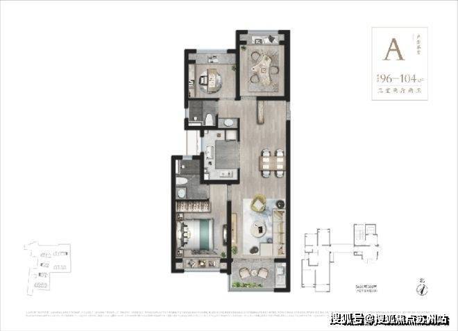 建筑面积约99-104㎡3房