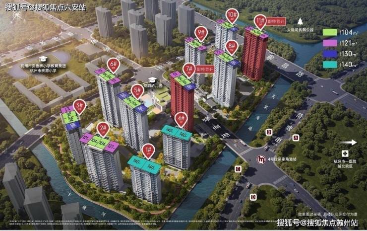 - **公园城市生活**:北邻大运河杭钢公园(音乐节举办地),南接桃源中央公园、独城生态公园,形成“四大公园+双河环绕”生态矩阵,推窗即享露营草坪、滨水长廊等休闲场景。