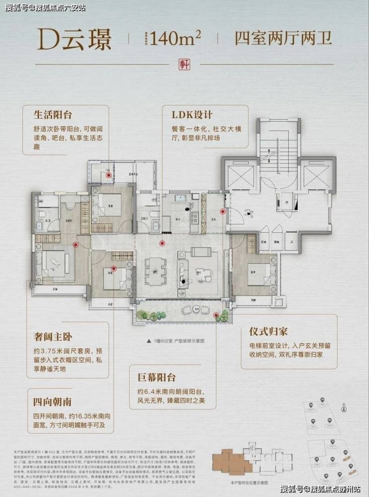- **140㎡四房**:4.5开间朝南+南北双阳台,主卧带衣帽间梳妆台,适配二孩家庭。