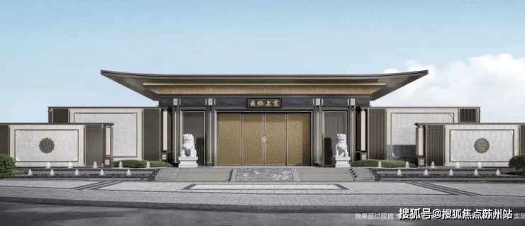 - **新中式建筑典范**:杭州云栖上宸售楼处电话☎:400-8828-814(售楼处预约看房热线)传承建发第四代住宅立面,采用三面大面积铝板+玻璃幕墙设计,顶部深灰铝板飞檐搭配金色云纹,兼具现代简约与东方韵味。南、北区双国风大门,融入石狮、罗汉松、照壁等传统元素,营造庄重归家礼序。