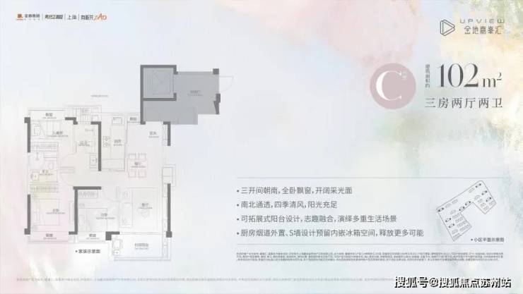 以及我们的 建面约102㎡(C户型)三房两厅两卫,不仅保留了其小户型所有的优势,更增强了空间感和舒适度!