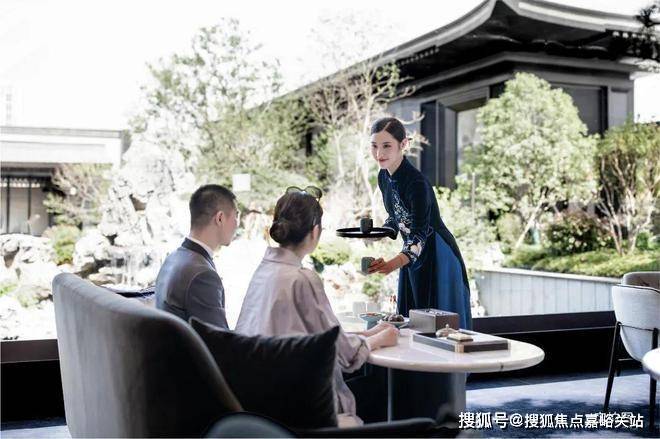 雅致石院与中庭古树相映,植物组团错落有致,营造出清逸山水园林之美,唤醒人们对林荫树下休憩闲聚的场地记忆.
