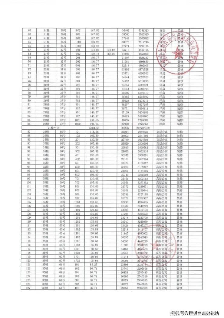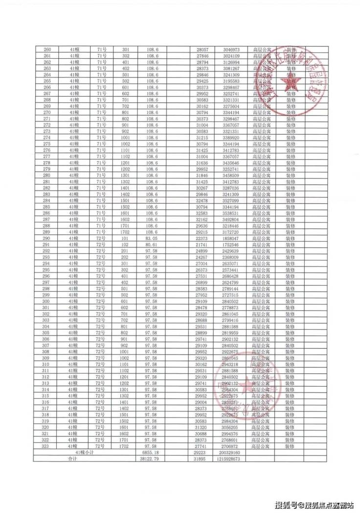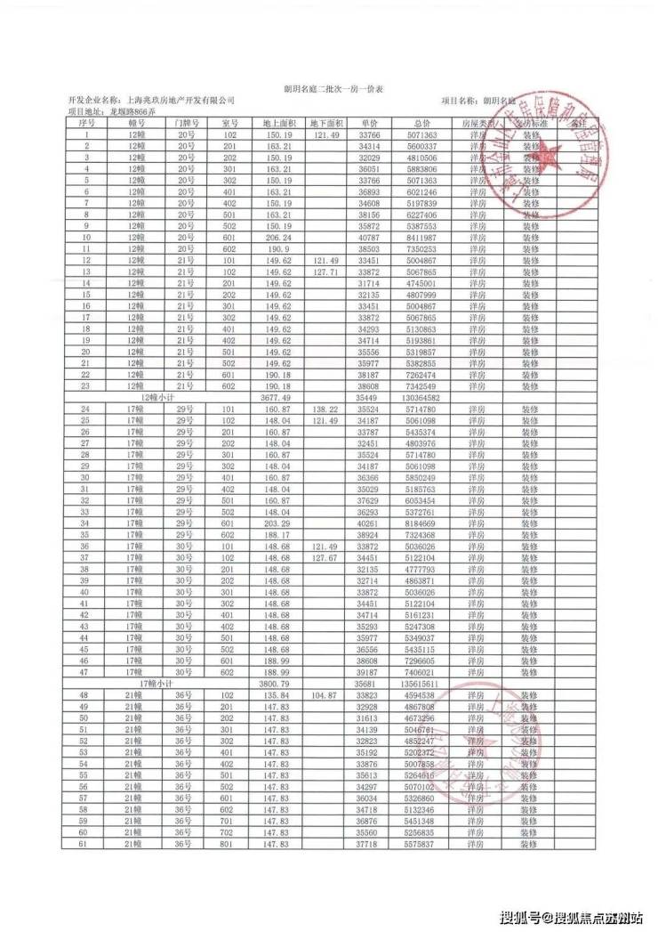 项目一房一价表