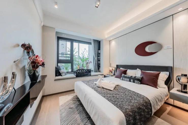 主卧做了大套房设计,带衣帽间+卫生间+飘窗,专属于主人的私密空间;